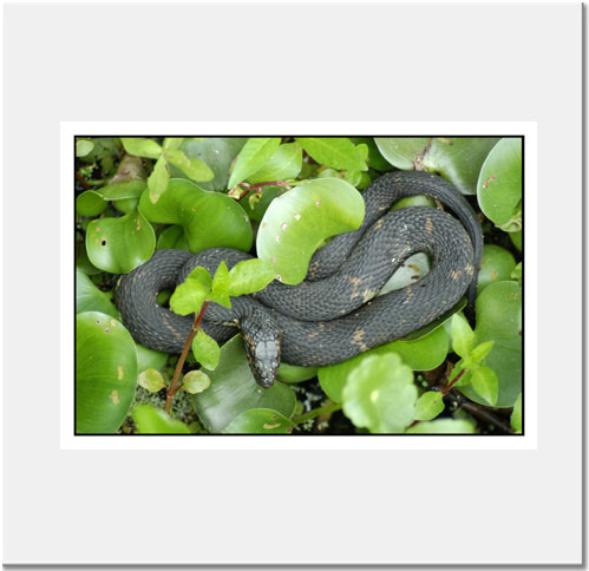 Photo: Water SnakeWaiting for the sun, curled in the duckweed.Each photo is titled and signed.Inventory #: N409